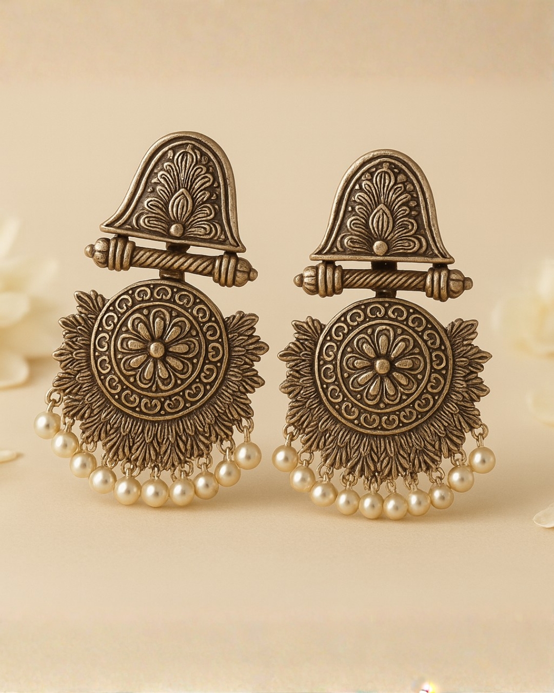 Antique Floral Chandbali Earrings